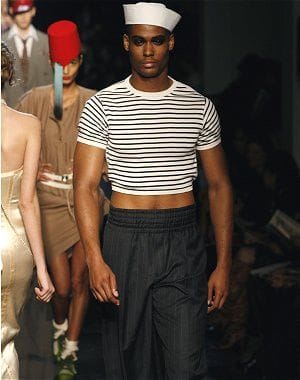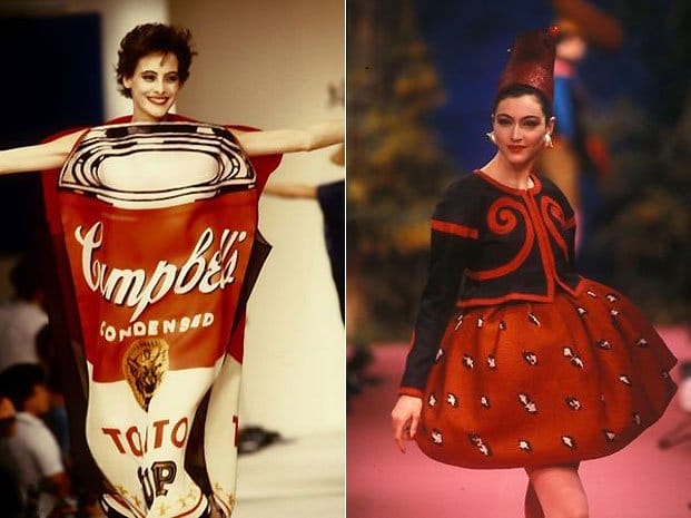 Žan Pol Gotier kreira odevne predmete sa insistiranjem na seksu, vidljivom zavođenju, zadovoljstvu, novcu… Tako će 1985.godine kreirati haljinu sa grudima u obliku ananasa. Radio je modele za Madonu u kojima donje rublje (tradicionalni korset) postaje gornje u nešto izmenjenoj formi. 1984.godine kreira modu za muškarce “Boy toy” sa prugastom – mornarskom majicom . Na njegovim modnim revijama muškarci defiluju u suknjama… Uniseks postaje nobl.