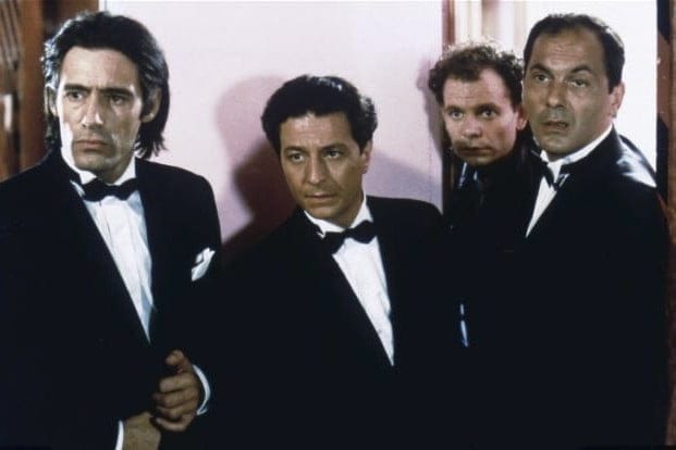 Muškarci nose odela koja podsećaju na 40-e. Umesto pet – šest dugmeta odela imaju četiri ( uticaj kreatora Armanija, Ane Klajn, Ralfa Lorana). Koristi se materijal na šire pruge u odnosu na 40-e. Naramenice su šire, reveri uži. Počinje da se nosi crna boja odela uz bele košulje.