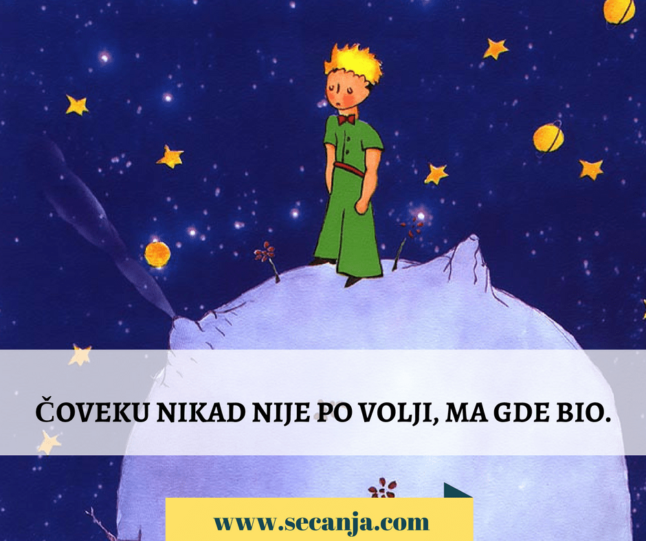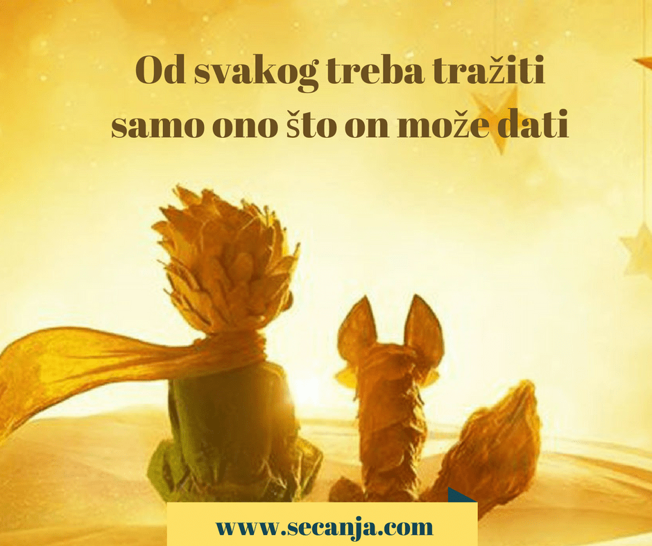 „Da, rekoh malom princu, bilo da je u pitanju kuća, zvijezde ili pustinja, ono što čini njihovu lepotu nevidljivo je!”