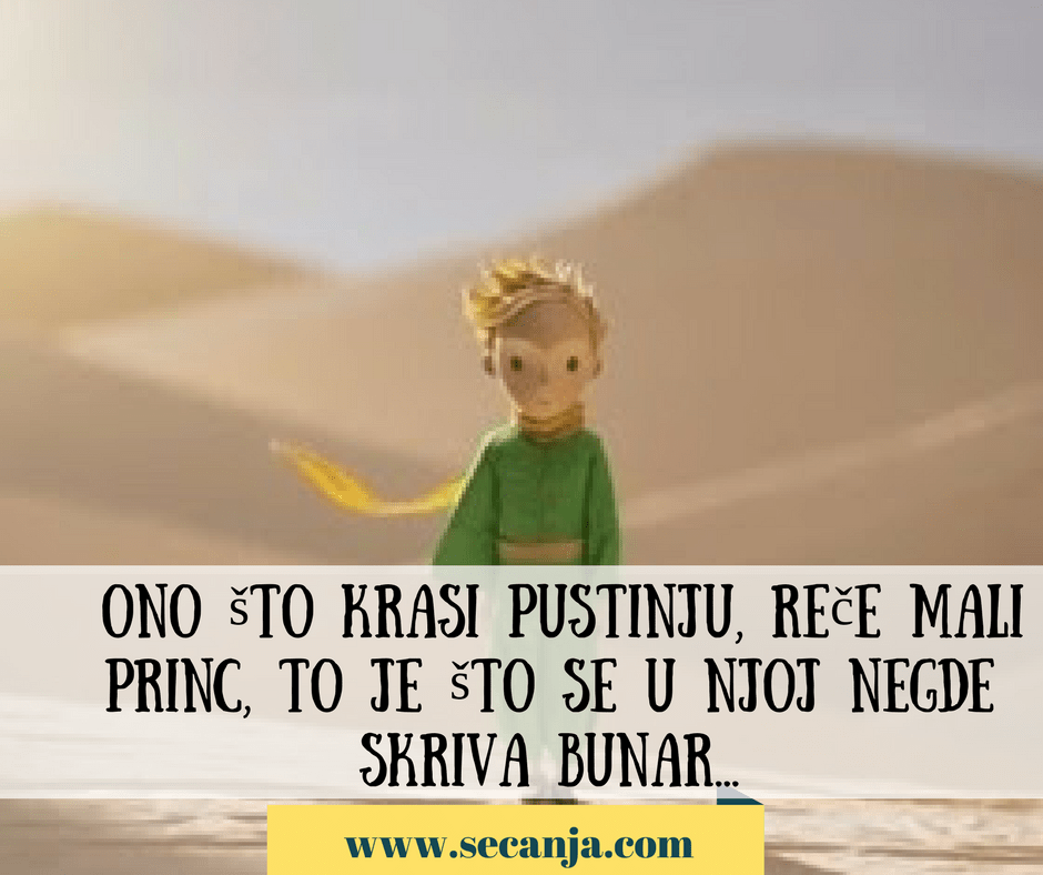 „Ono što krasi pustinju, reče mali princ, to je što se u njoj negde skriva bunar…”