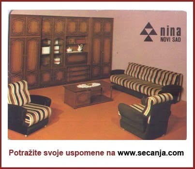Krajem 60-ih prvi regal je bio u dnevnoj sobi, ali za pravo čudo uopšte nije bio uobičajen tako da i danas postoji i krasi isti prostor. Sledeći regali su već bili prepoznatljivi, manje više svi su ličili jedan na drugi. Neki su imali više a neki manje otvorenih polica za ukrase ili knjige ( sami smo priznavali da su kod mnogih to bile police za “knjige na metar”). Preskočila je kupovinu kombinovanih ormana…Došli su trosedi i dvosedi ( kod nje – sve u maslinasto zelenoj boji pliša), udobne fotelje…mogao si birati dizajn. U spavaćim sobama je francuski ležaj koji nema nogare već je ravan sa podom i niži od njenog prvog bračnog kreveta. Nekad je svaki komad nameštaja imao nogare i bio odignut od poda, odavno toga više nema…