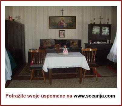 Najinteresantnija mu je bila najstarija kći koja je za dve godine stanovanja u roditeljskoj kući uspela da uz braćnog druga sazida malu kuću. U spavaću sobu postavila je dobijeni nameštaj: trokrilni orman, bračni krevet spojen iz dva kreveta sa madracima što je stvaralo malu ulubinu kad se stavi veliki čaršav Ili prekrivač ( smetala joj je ta mala razdvojenost od voljenog pa je sunđerom poravnala), dve male komode koje su stajale sa strana kreveta. Nameštaj više nije bio od punog drveta… Kad je na red došlo opremanje i ostalih prostorija ćerka se razigrala i pustila mašti da od svog doma napravi malu bajku. Iako su stvari bile jednostavne, njeno dodatno ukrašavanje ih je ulepšalo. Kauč sa lakiranim drvenim obodima i dve fotelje za decu prekrila je prekrivačem od fine tkanine sa karnerima. Seća se deka: pomalo sjajna bordo boja protkana je zlatastim nitima. Istim materijalom ukrasila je i obode zavesa. Mali sto je bio trouglast. Takav stočić video sam samo kod nje, reče jednom prilikom jer se često vraćao na njega. Stočić je prekriven okruglim, belim, heklanim stolnjakom do polovine nogara. Uz “Kraljicu peći”, šareni tepih na brodskom podu, jednostavni dvokrilni orman i manju lakiranu vitrinu sa staklom na kojoj su stajali ukrasi primereni dečjoj glavi, sobica je izgledala rajski. Zidovi su rađeni štriclom preko koje se valjkom izvlačila zlatasta mustra koja je odavala utisak bogatstva ali i topline. I tako od prostorije do prostorije… Komšije su njenu kuću zvali “zlatna kuća”. Dugo je svoju upotrebu imao otoman koji je stajao u kuhinji. Gostiju puno, trebalo je imati mesta da ih smestiš…a i prijatno je na njemu odmoriti se posle posla kratkim snom.