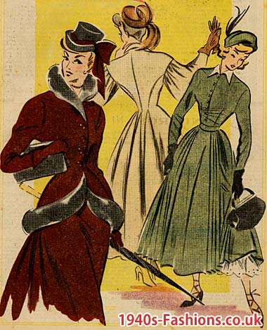 Štedi se na svemu: suknje postaju kraće – uglavnom su zvonaste, izbegavaju se džepovi, koristi se samo jedno do tri dugmeta ( dugme postaje ukras na odeći), jakne su kraće i kockaste… Prepravlja se stara odeća, a od uniformi se kreira nov model jakne koji će se nazvati “Eisenhowen”…