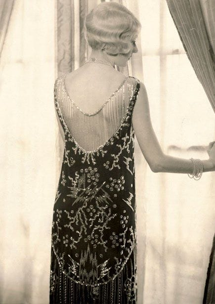 Za večernje izlaske haljine su ukrašavane perlicama, vezom ili pletenicama. Često su ramena ili leđa otkriveni, a za igru čarlstona poluprozirne ili prozirne. Haljina se mogla završavati i resama. Grudi se ni u dnevnoj ni u večernjoj varijanti oblačenja nisu isticale. Često su se oblačili i posebni steznici za grudi.