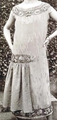 Novi model haljina podrazumevao je ravan kroj . “Struk” se spušta do bokova, često naglašen remenom – pojasom. Ispod pojasa je široki rub sa naborima. Dužina haljina se od duge sa godinama skraćivala da bi došla do linije koja tek prekriva kolena. Lepota ženskih nogu dobija na značaju. Haljine sa rukavima koristile su zvonast ili ravni oblik rukava. Otvor oko vrata bio je u obliku V ili U.